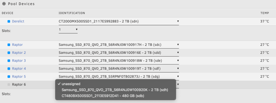 - Haga clic en una ranura vacía bajo Dispositivos del Array.
